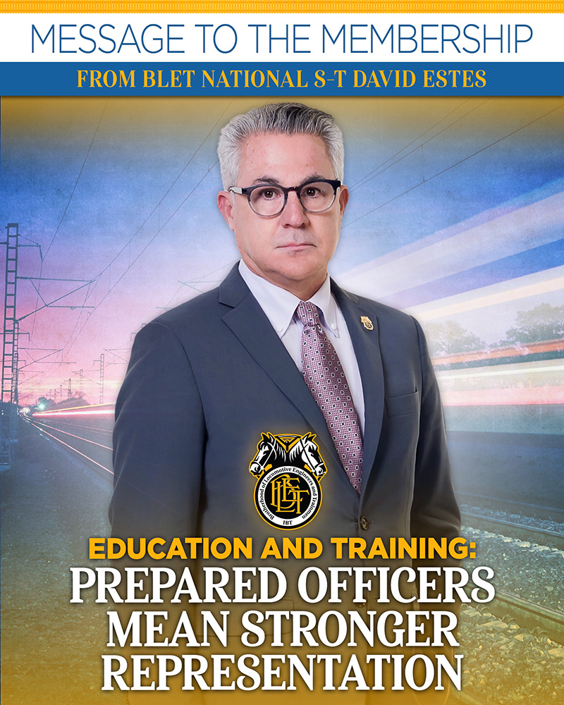 As head of the Education and Training Department, I am expanding access to training for officers at every level and for members across the country. We are modernizing delivery, removing unnecessary barriers, and strengthening instruction in contract administration, financial compliance, grievance handling, and officer responsibilities. Our objective is straightforward: provide practical, accessible training that strengthens leadership throughout the BLET.