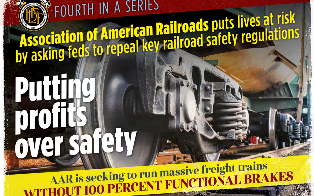 Running trains with less than 85 percent of brakes functioning, as opposed to all of them, shows a disregard for safe train operations. Americans need to know what the railroads are trying to do: Cutting corners puts lives at risk.