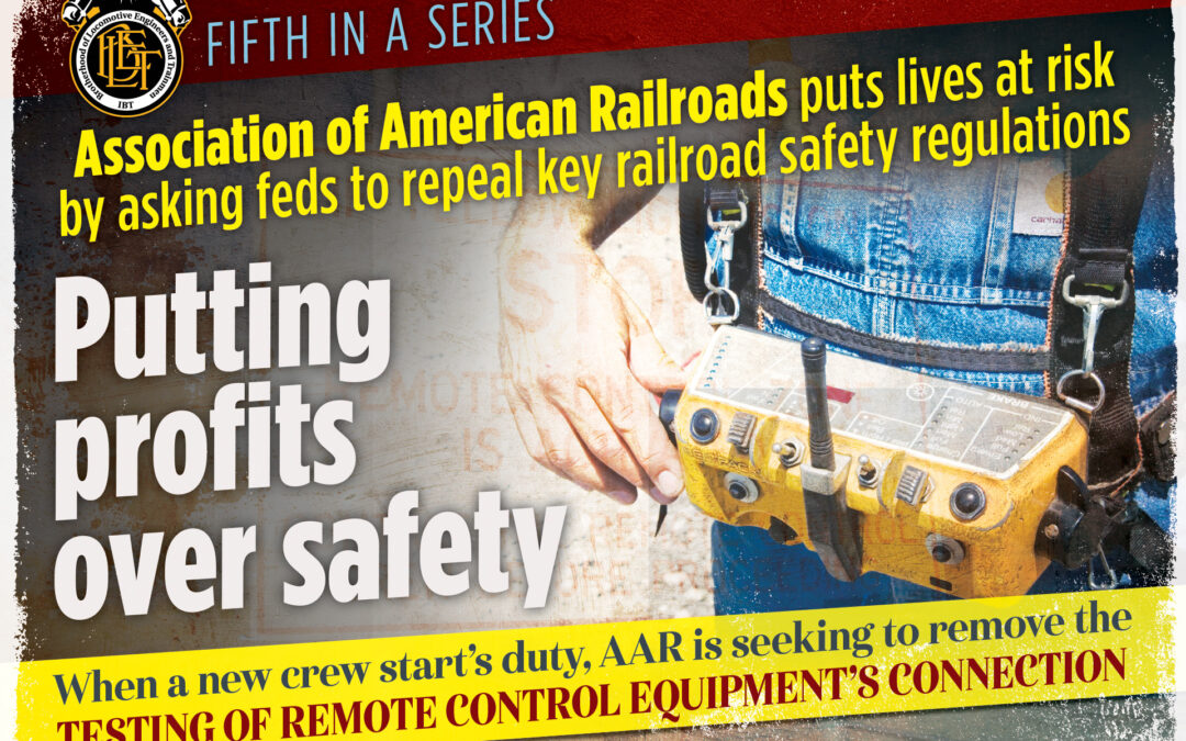 This week, we highlight how AAR is attempting to make an already risky operation even more dangerous by weakening safeguards related to remote-control locomotives.