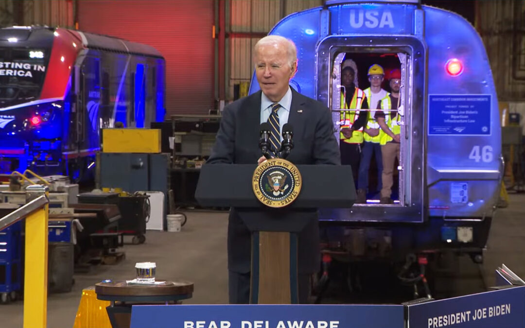 The Biden administration announced on November 6 that it will invest $16.4 billion for 25 passenger rail projects along the Northeast Corridor (NEC). This unprecedented investment will support over 100,000 good-paying construction jobs and will help speed rail passengers to their destinations. It is expected that these improvements, when completed, will shave 30 minutes from train travel between Washington and New York and a comparable time savings between New York and Boston. President Biden traveled to an Amtrak maintenance facility in Delaware this week to make the announcement. This investment tackles several long-standing infrastructure needs, and major upgrades will improve tunnels, bridges, tracks, power systems, signals, stations, and more, allowing for increased speeds. Projects include expansion of the Gateway Hudson River Tunnel between New York and New Jersey, replacement of the Frederick Douglass Tunnel in Baltimore, replacement of the Susquehanna River Bridge in Maryland, replacement of the Connecticut River Bridge in Connecticut, and improved Penn Station access in New York City. The NEC runs from Boston to Washington, D.C., and is one of the highest volume passenger rail corridors in the world and the busiest in the United States, with hundreds of thousands of daily riders. It also supports billions of dollars in annual economic activity, making it key to the national economy. More information: The White House published this Fact Sheet with detailed information about the major awarded projects.Video: Rail union members introduced President Biden as he announced $16.4 billion in funding for passenger and commuter rail.