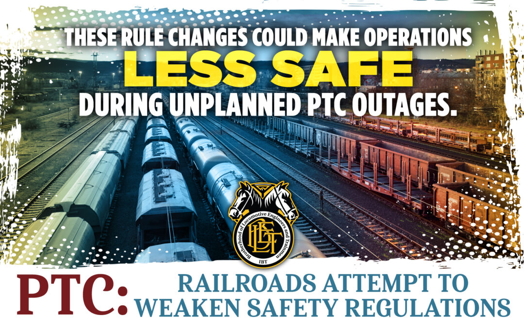 The BLET has called out five railroads for a backdoor attempt to make changes to Positive Train Control operating rules without going through proper regulatory channels.