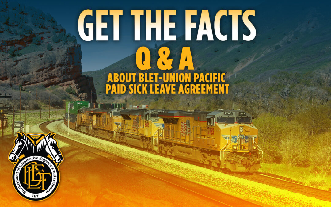 INDEPENDENCE, Ohio, June 5 — Earlier today, the BLET announced that it has reached a paid sick leave agreement with the Union Pacific Railroad. The General Chairmen involved in negotiating the new deal have prepared the following Fact Sheet to address potential membership questions: