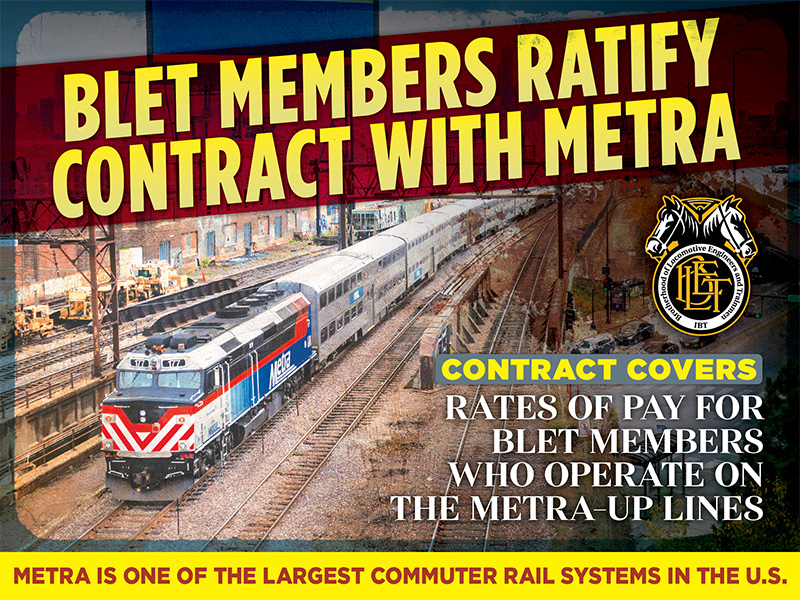 BLET members today ratified a new contract with Metra that provides a 3.5 percent general wage increase. Members voted 60-1 in favor of ratification.