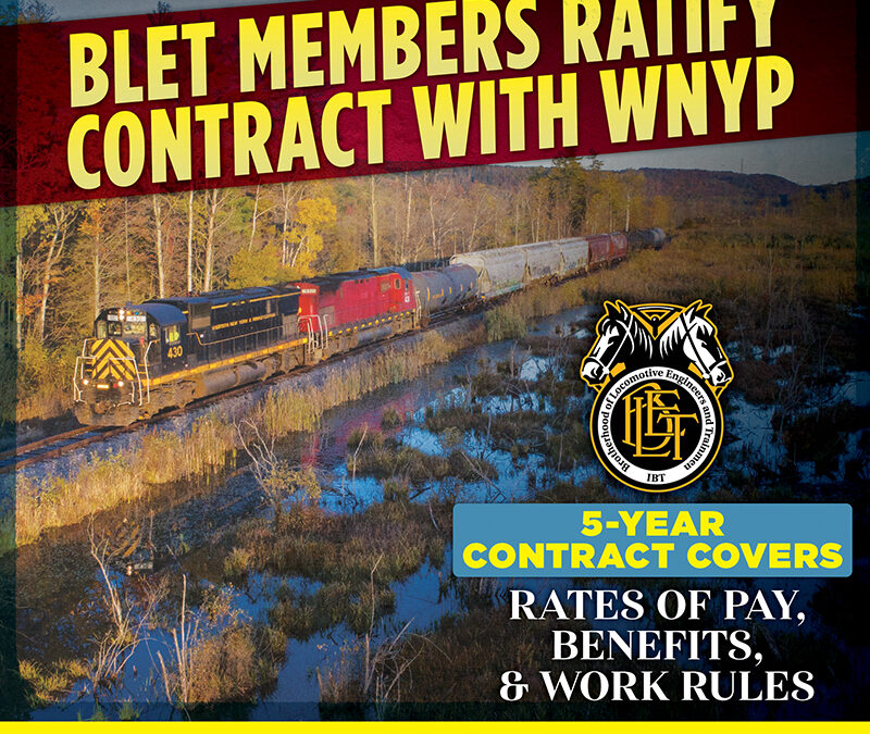 On November 11, BLET members ratified a new five-year agreement with the Western New York & Pennsylvania Railroad (WNYP), governing rates of pay, benefits, and work rules.