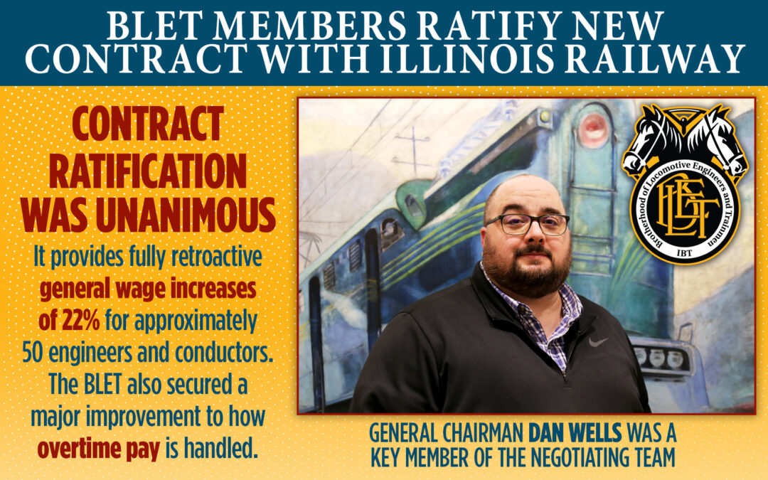INDEPENDENCE, Ohio, February 10 — Today, members of the Brotherhood of Locomotive Engineers and Trainmen (BLET) unanimously ratified a new collective bargaining agreement with the Illinois Railway.