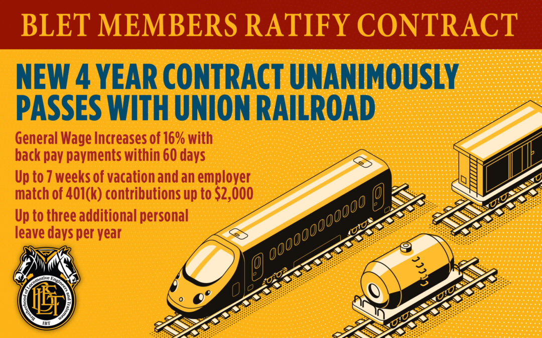 INDEPENDENCE, Ohio, March 3 — Today, members of the Brotherhood of Locomotive Engineers and Trainmen (BLET) unanimously ratified a new collective bargaining agreement with the Union Railroad of Pittsburgh, Pa.