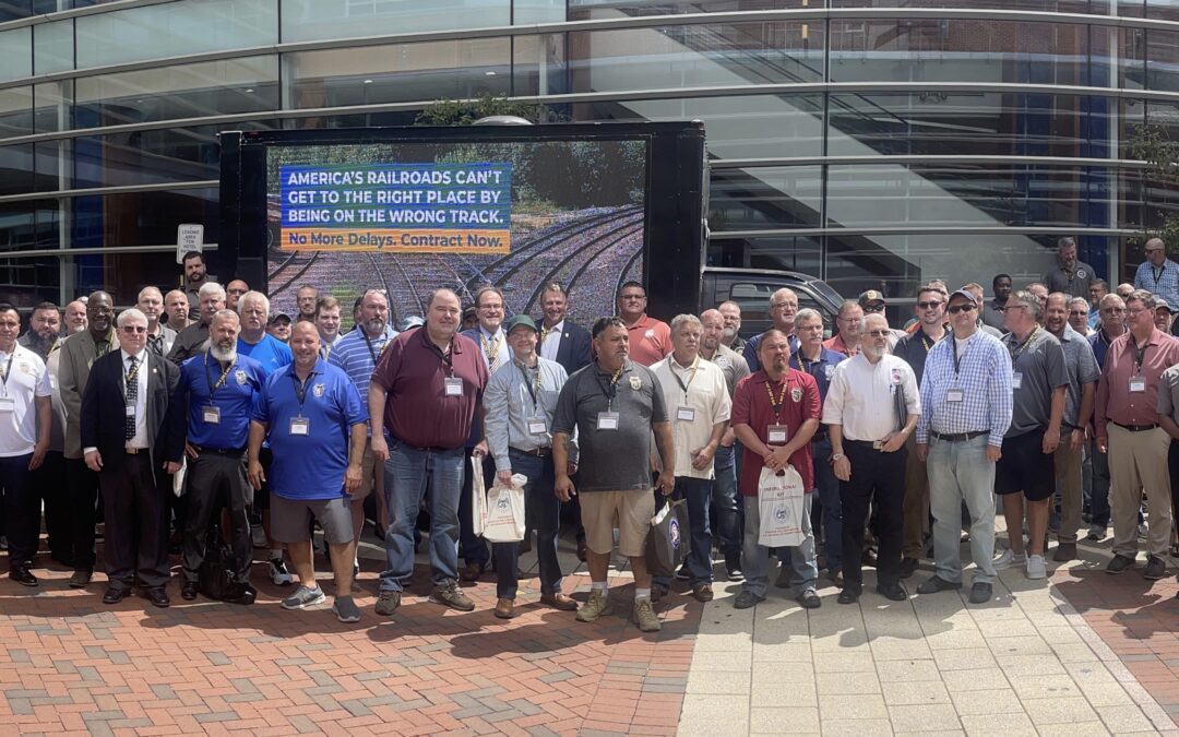 The morning session concluded with a video presentation highlighting the union’s recent efforts to bring attention to the struggles that railroad workers face. In essence, railroad workers have been without a contract pay raise since 2019, yet carriers continually brag about record profits. Through several outreach campaigns, the BLET is letting the public know about this inequity. A mobile billboard truck was on-site at the BLET regional meeting in Baltimore, where the group en masse adjourned for a brief rally to send a message to rail carriers that they are off track, and that it’s time to settle the national contract by investing in crews and safety.