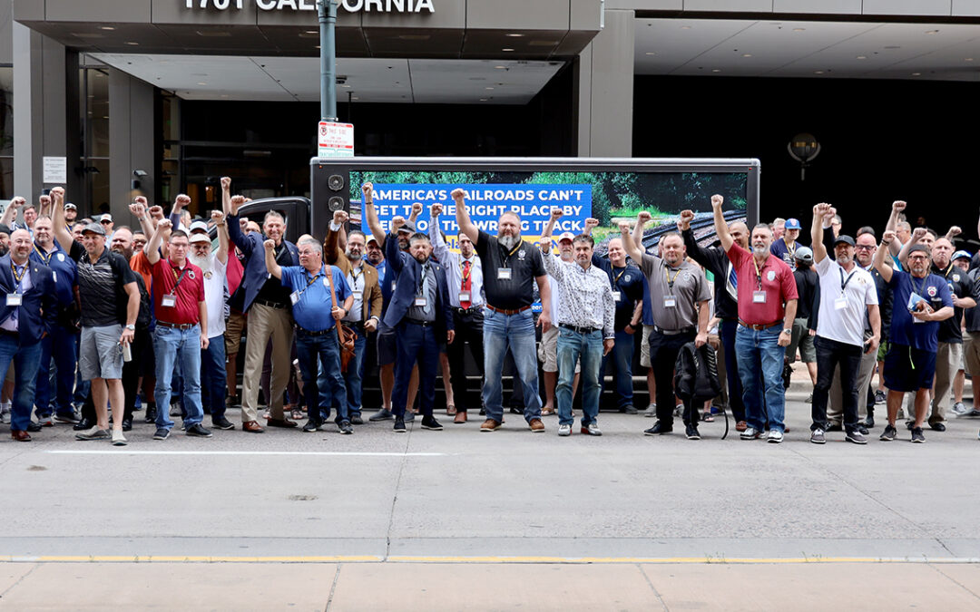 The morning session concluded with a video presentation highlighting the union’s recent efforts to bring attention to the struggles that railroad workers face. In essence, railroad workers have been without a contract pay raise since 2019, yet carriers continually brag about record profits. The BLET is letting the public know about this inequity through several outreach campaigns. A mobile billboard truck was on site at the BLET regional meeting in Denver, where the group en masse adjourned for a brief rally to send a message to rail carriers that they are off track, and that it’s time to settle the national contract by investing in crews and safety.