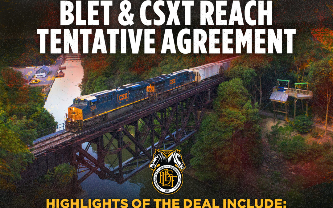 Nearly 3,500 BLET members at CSXT will receive detailed information about the tentative agreement soon, and a ratification vote is scheduled to begin later this month.