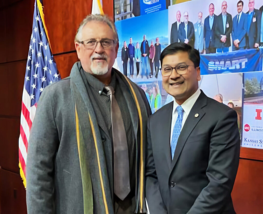 Amit Bose was honored for his dedication to rail safety at a reception in Washington, D.C., on January 14. Bose is stepping down from his role as head of the Federal Railroad Administration, a position he has held since early 2022. Under his leadership, the FRA enacted a regulation requiring two-person train crews and advocated for more widespread participation in the Confidential Close Call Reporting System (C3RS). National President Eddie Hall attended the event to personally thank Administrator Bose on behalf of the BLET and its members.