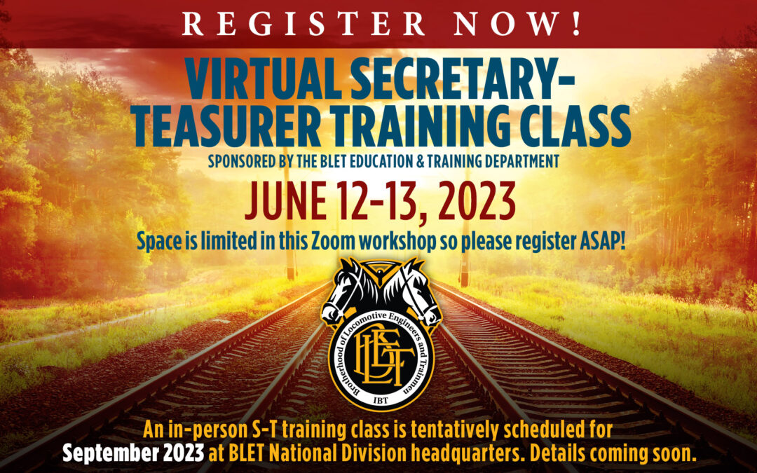 The BLET will also conduct an in-person Secretary-Treasurer training workshop at the National Division in September 2023. Information for this workshop will be announced as soon as details become available.