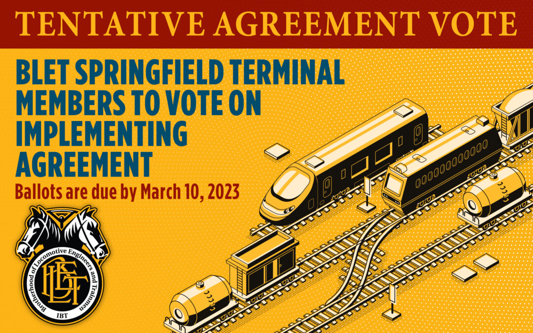 INDEPENDENCE, Ohio, February 14 — The Brotherhood of Locomotive Engineers and Trainmen (BLET) today mailed ballots to about 60 members employed by the Springfield Terminal Railway Company (ST) (an affiliate of Pan Am Railways) regarding a tentative New York Dock Implementing Agreement reached with the ST and Pittsburgh and Shawmut Railroad LLC d/b/a Berkshire & Eastern Railroad (B&E) (a subsidiary of Genesee and Wyoming).