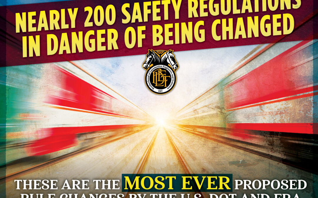 The DOT and FRA have never proposed this many rule changes at once, and at the same time have imposed an abbreviated period for response. Most proposed changed were published in the Federal Register on July 1 and the deadline for all comments is September 2. Given the sheer number, BLET will prioritize responding to the most important rules from a locomotive engineer and operating craft perspective.