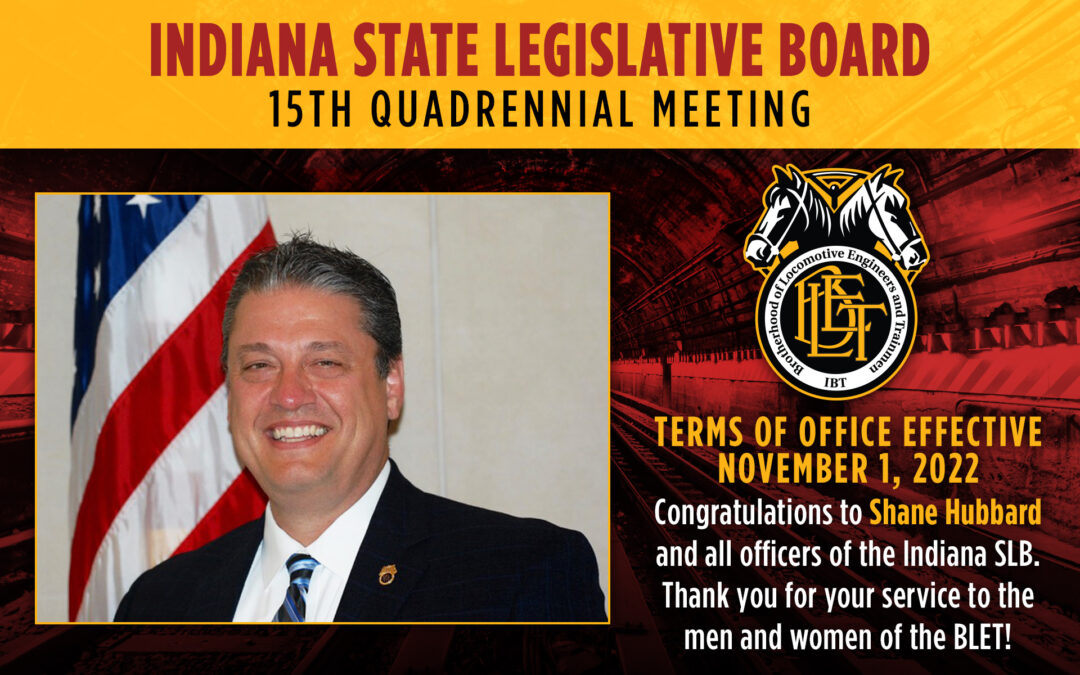 “I congratulate Brother Hubbard and all officers of the Indiana State Legislative Board,” President Pierce said. “I also thank them for their dedicated service to our Brotherhood.”