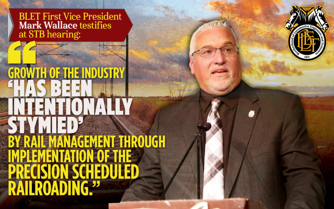 BLET First Vice President Mark Wallace did not mince his words when he testified at the Surface Transportation Board’s public hearing that focused on the lack of growth and poor service in the freight rail industry.