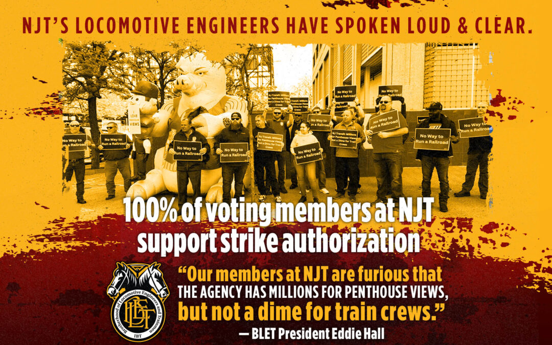 BLET members at NJT are furious over the transit agency’s misplaced priorities. The agency has “millions for penthouse views, but not a dime for train crews.” NJT approved $440 million+ for luxury office space for execs, while engineers haven’t had a raise since 2019.