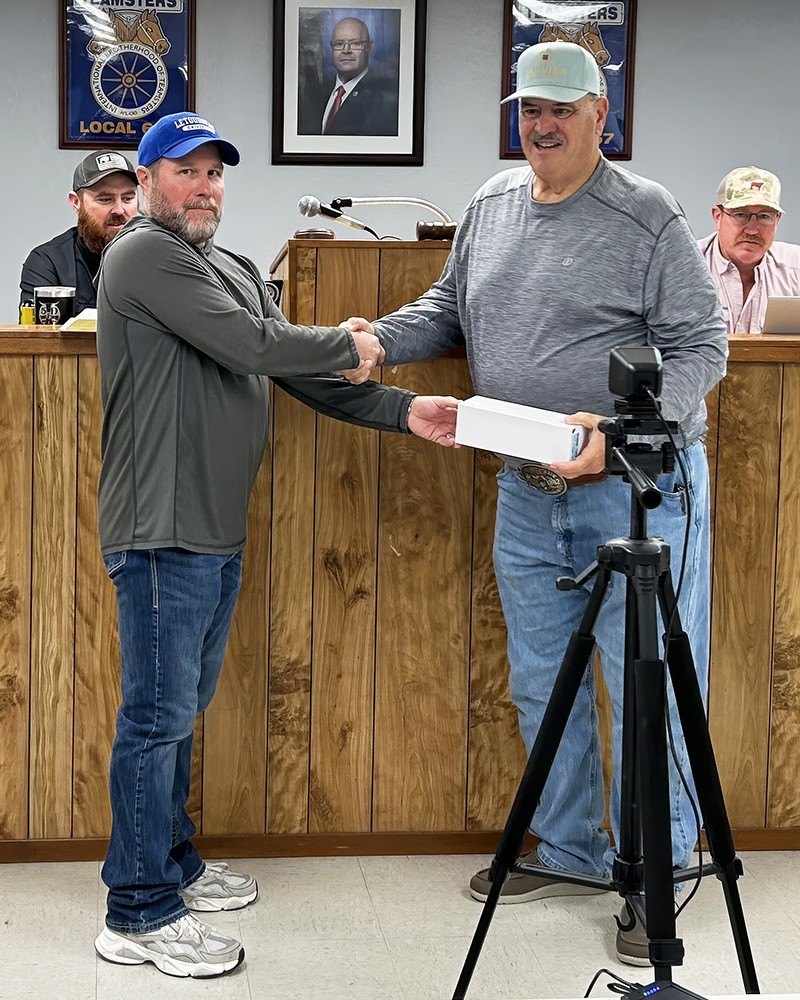 Division 197 President Jason Hart presented Brother Eoff with a retirement gift at the Division’s regular monthly meeting in January.