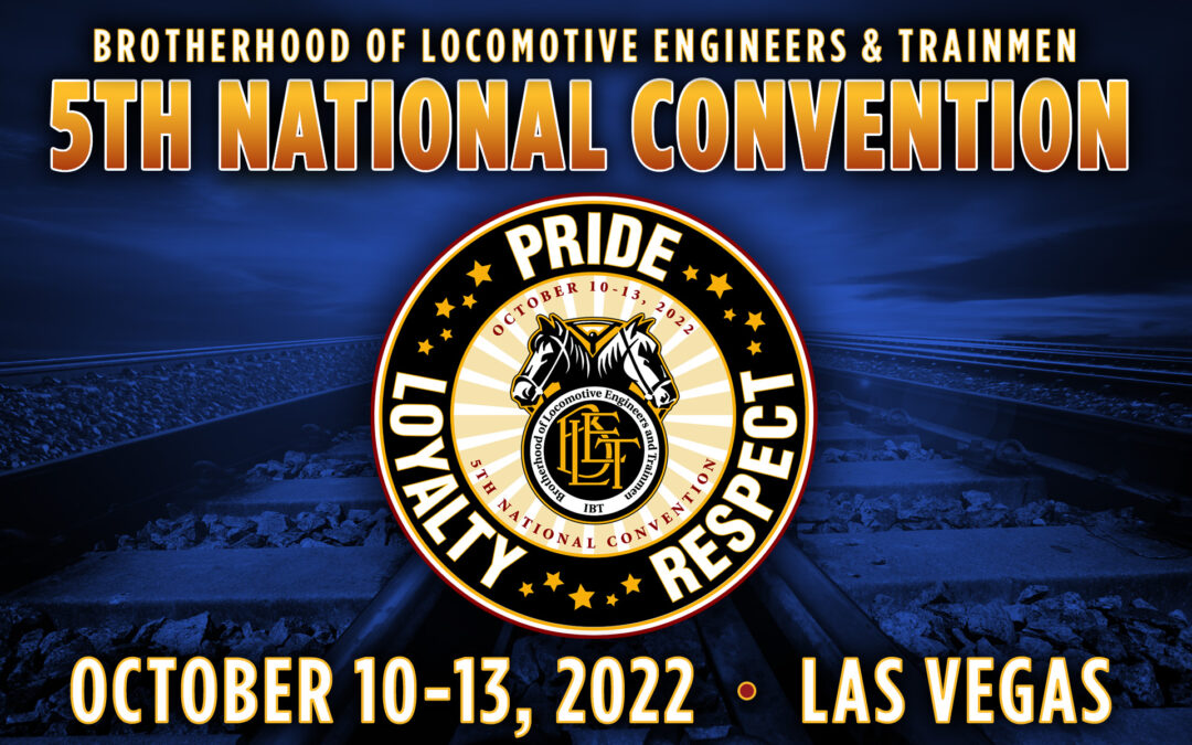 The BLET’s Fifth National Convention will convene at the Bally’s Las Vegas Hotel and Casino from Monday, October 10, 2022, through Thursday, October 13, 2022. Delegate registration begins on Sunday, October 9. Approximately 475 delegates will represent nearly 33,000 active locomotive engineers and trainmen throughout the United States.