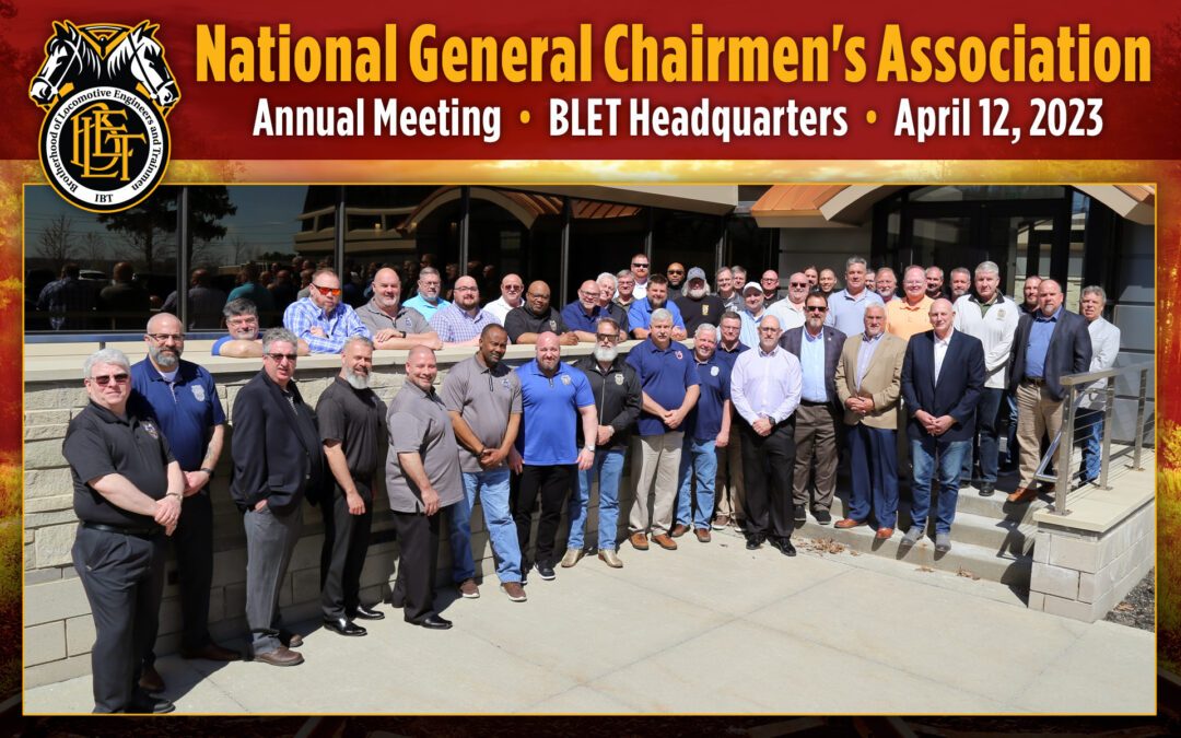 INDEPENDENCE, Ohio, April 14 — Paid sick leave and rail safety were among the topics of discussion as members of the BLET’s National General Chairmen’s Association (NGCA) concluded their annual meeting, which was held at the BLET National Division headquarters on April 12.
