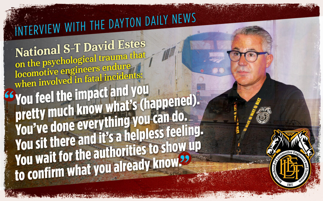 In an interview with Ohio’s Dayton Daily News, BLET National Secretary-Treasurer David Estes discussed the psychological trauma that locomotive engineers endure when they are involved in fatal pedestrian or vehicle incidents. It is an all-too-familiar scenario for engineers, but the newspaper examined the issue after the city experienced five grade crossing fatalities from March 3-April 8, 2024.
