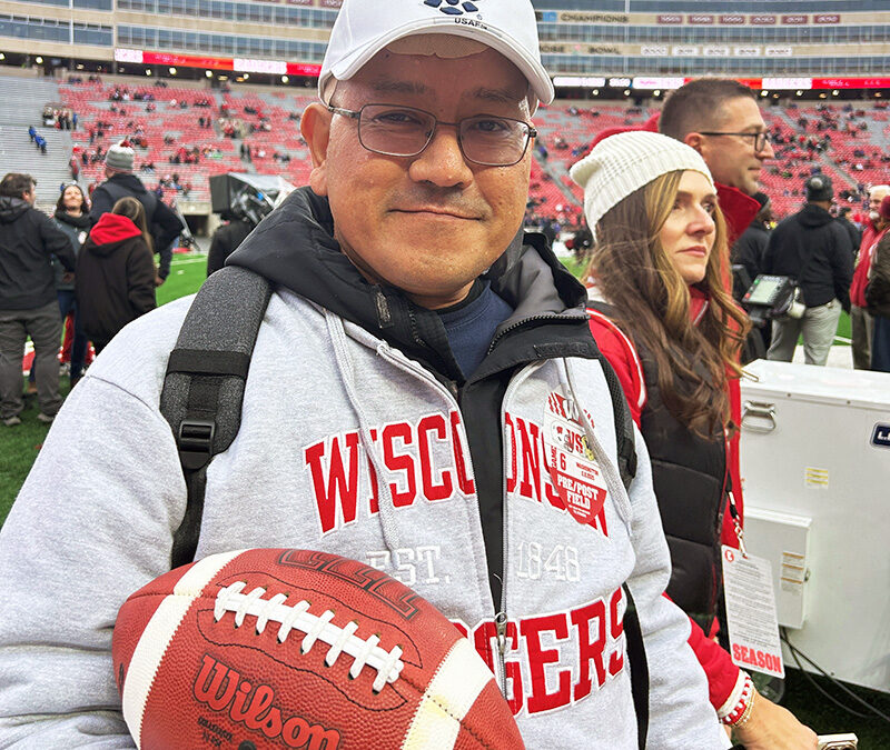 In spite of the challenges, Ramos has enjoyed several highlights over the last year. A new grandson was born in Washington state, though Tony and Janice have not met him yet. An Air Force veteran, Ramos was also invited by the Wisconsin Division of Veterans Affairs to attend the November 8 University of Wisconsin Badgers football game in Madison, where he was presented with a game ball.