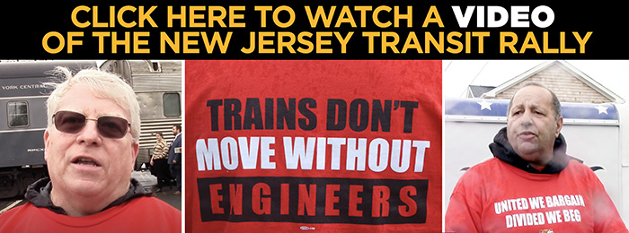 The BLET is continuing to use every legal means necessary to secure a new contract at NJ Transit. On September 30, about 150 BLET members and fellow Teamsters crashed a would-be birthday celebration for NJ Transit at a train stop in Bay Head. The railroad had scheduled a train ride featuring vintage rail cars to mark its 40th anniversary, but as reported by NJ.com, a large throng of BLET members crashed the party. “We’re out here to point out NJ Transit’s hypocrisy,” said General Chairman James Brown. “For 40 years, they’ve been underpaying their engineers. NJ Transit claims they have no money. They’re misleading the public and their employees. But they have $440 million for a new office building. That’s very frustrating for their employees.” In the midst of contract negotiations with the BLET earlier this year, NJ Transit announced that they would spend more than $440 million to lease luxury office space, but have failed to make an acceptable offer to BLET members at the bargaining table. NJ Transit’s locomotive engineers have been seeking a new contract since October 2019. BLET National Vice President Jim Louis said: “Four years without a contract is enough. The men and women who work these trains every day all through COVID-19 are trying to support their families. All they’re asking for is to get paid like other engineers in this area. Plain and simple. NJ Transit just fails to do any type of real negotiations with the union.” A video from the September 30 rally shows NJ Transit CEO Kevin Corbett refusing to speak to the media regarding negotiations.