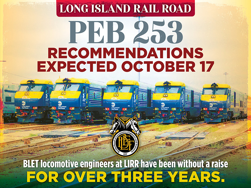 The BLET presented a strong case on behalf of its members as Presidential Emergency Board (PEB) 253 held formal hearings last week in the contract dispute between BLET along with several other unions and the Long Island Rail Road. It is expected that the PEB will issue its recommendations on October 17.