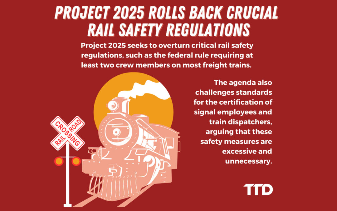 Of special note to BLET members and other unionized railroaders, Project 2025 recommends the elimination of critical two-person train crew safety regulations. Additionally, Project 2025 calls for the rollback of safety-critical brake inspections, mechanical inspections, and track inspections.