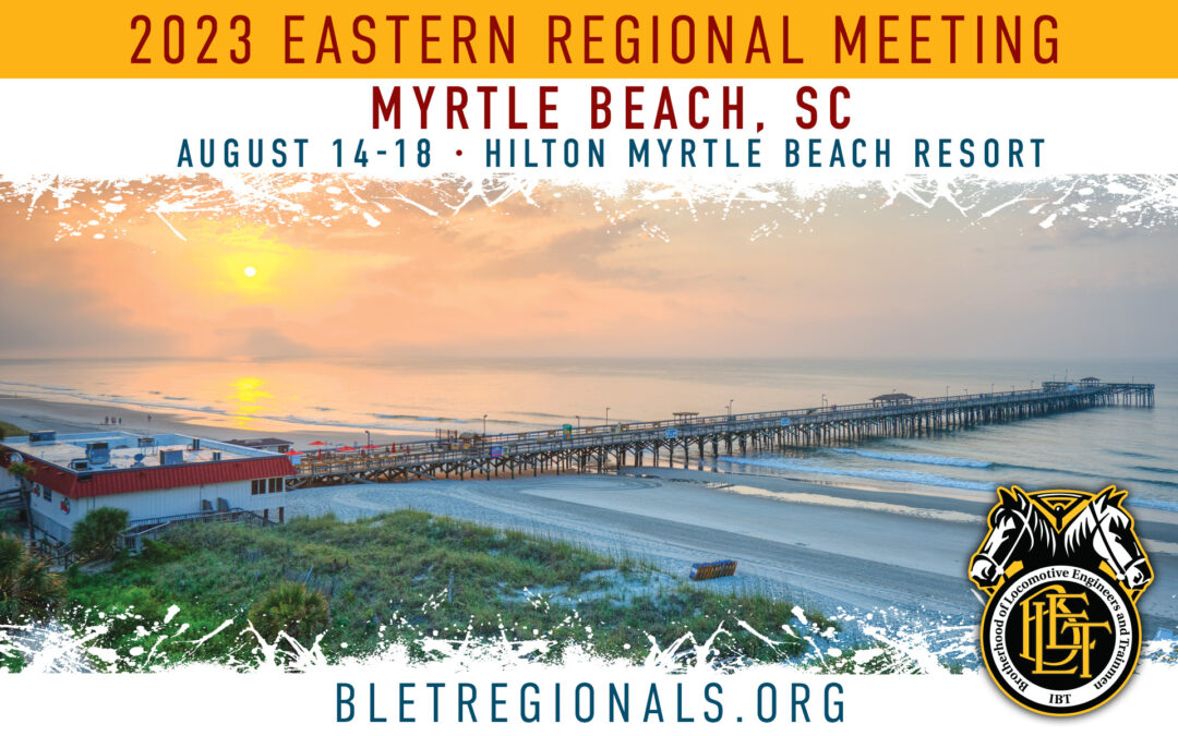 INDEPENDENCE, Ohio, May 17 — Registration is now open for the BLET’s 2023 Eastern regional meeting, which will be held at the Hilton Myrtle Beach, August 14-18, 2023.