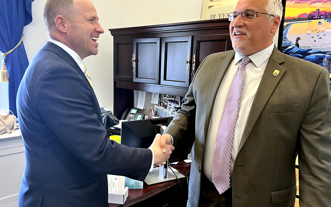 New York Congressman Tim Kennedy (left) meets with Teamsters Rail Conference President and BLET First Vice President Mark Wallace