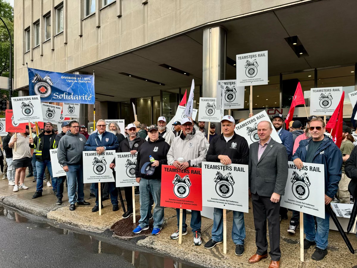 Sean O’Brien, General President of the International Brotherhood of Teamsters, and François Laporte, President of Teamsters Canada, were on the picket line at CPKC’s headquarters in Calgary on August 23.