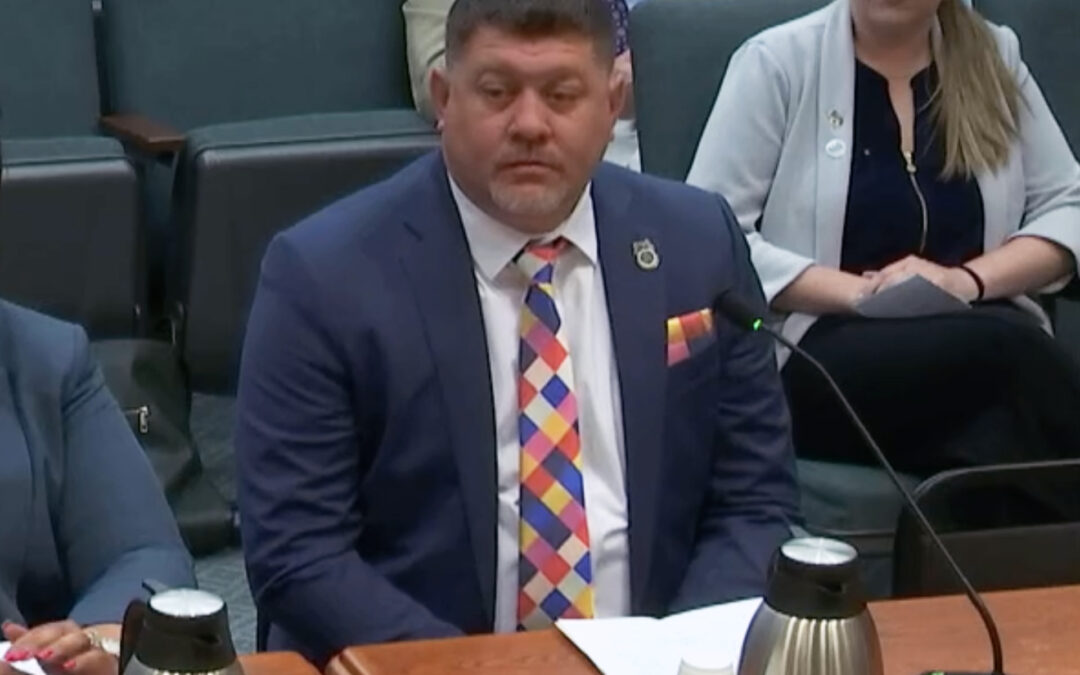 BLET Texas SLB Chairman Ben Wright prepares to deliver testimony in favor of Texas Senate Bill 1555.