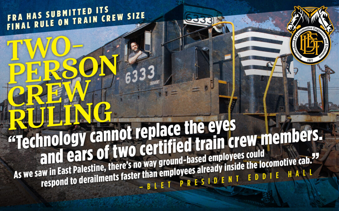 The BLET, its members, and other rail labor unions filed comments in support of two-person train crews during the public comment period that began in 2022. It is unclear at this time how the final rule may differ from the proposed rule, which was published in the Federal Register on July 28, 2022.