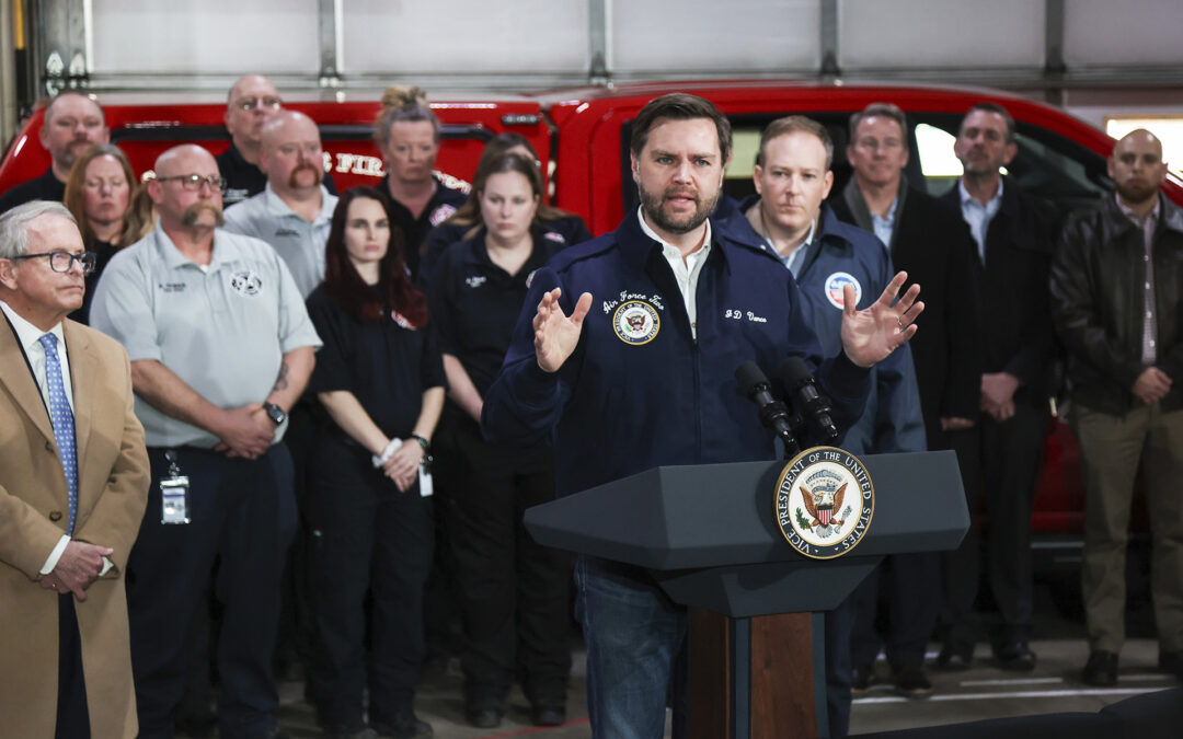 Vice President J.D. Vance said the Trump administration supports the Railway Safety Act during his visit to East Palestine on February 3. Photo: Associated Press