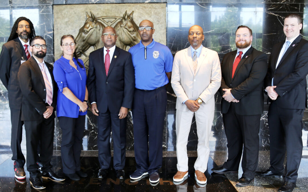 Officers of the DC SLB, from left: Dorian Potts, Secretary-Treasurer; Jeese Flotte, Second Vice Chairman; Kelly Hamrick, Alternate Secretary-Treasurer, Herbert Harris Jr., Chairman; Carlyle Smith, First Vice Chairman; Christopher Edgerton, Trustee; Ryan Merrill, Div. 482 Alternate Secretary-Treasurer; and Sean Gilliam, Trustee.