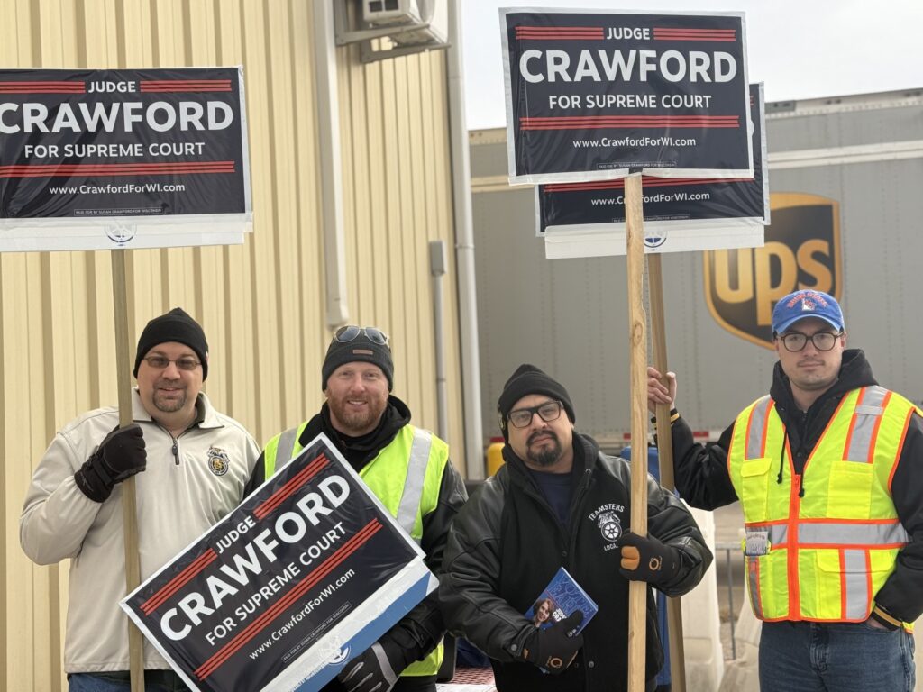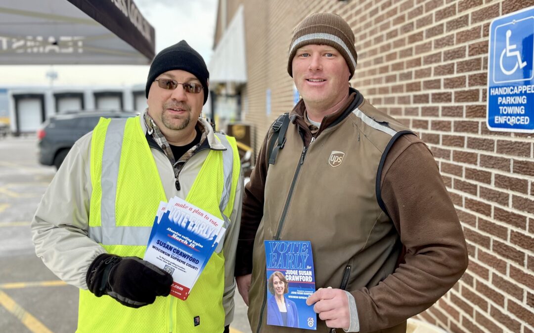 The race for the Wisconsin Supreme Court is one of the most important in the country, and the BLET and Teamsters are pulling out all the stops to support Judge Susan Crawford. BLET Division 174 member Eric Stroik, Secretary-Treasurer of the Wisconsin State Legislative Board, joined members of Teamsters Joint Council 39 and Local 344 at a large get out the vote rally in Oshkosh on March 21.